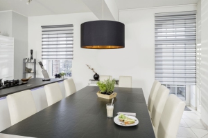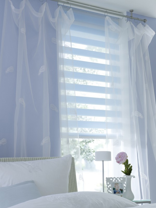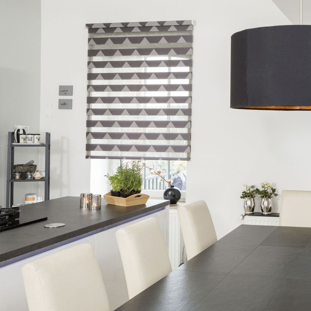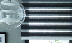 Bei Twinlight, dem Rollo mit abwechselnd dicht und durch¬lässig gewebten